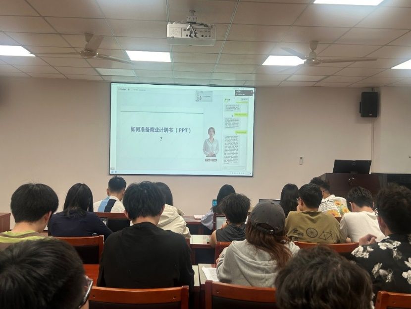 活动中,钱晨董事长带来了题为 “令人眼前一亮的商业计划书” 的精彩分享。他以 “AI 赋能大学生创新创业大赛” 为切入点,巧妙开启交流,深入浅出地为参会团队解读了中国国际大学生创新大赛的核心考察要点。随后,钱晨详细阐述了备赛关键要素、材料展示要点以及各要素之间的内在逻辑关系,着重强调了大赛专家评审时关注的核心要点,为同学们提供了极具针对性的备赛指导。